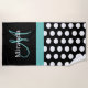 Toalha De Praia Monograma Verde Teal Bolinhas Branca Preta