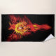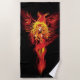Mulher que é uma chama com asas. Uma mulher fênix em vermelho, laranja e amarelo está em pano de fundo de preto.