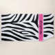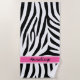 Na moda moderno designer Ladies wristwatch apresentando um padrão de stripe de zebra preto e branco com uma banda de nome rosa quente que pode ser personalizada para qualquer nome para criar um único relógio personalizado de senhoras. O design termina com os números pretos brancos