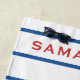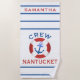 Toalha de praia Nantucket personalizada náutica. Âncora náutica vermelha e azul e design de boia leram o Nantucket da Tripulação, fácil de personalizar com seu nome.