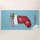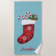 Toalha De Praia Natal Vermelho Em Azul Com Texto Personalizado
