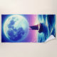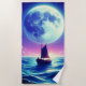 Esta toalha de praia tem uma lua enorme e um barco fotografado nela.