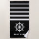 Toalha De Praia Navio Helm Roda Nome do Seu Barco Marinho Preto
