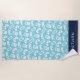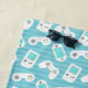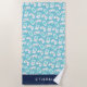 Uma toalha de praia personalizada e bonita para seu pequeno jogador apresenta um padrão de controladores de jogos retrorreflectores e consoles de jogos de mão em um fundo turquesa, com um nome ou inicial na parte inferior.