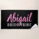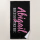 Toalha de praia minimalista rosa, branca e preta da tribo da noiva com nome personalizado da dama de honra para ajudar a celebrar durante uma despedida de solteira / fim de semana de despedida de solteira.