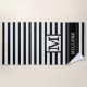 Toalha de praia em faixa de cabana com padrão listrado preto e branco. Personalize com seu monograma e nome da família.