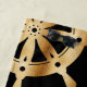 Um fundo na moda preto. Decorrido com uma parte de dois volantes dourados falsos. Personalize e adicione o nome do barco.