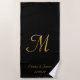 Monograma preto e Dourado elegante Nome da toalha de praia