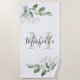 Toalha De Praia Nome do Script Elegante do Eucalyptus Monograma