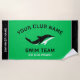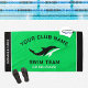 Design de toalha de piscina personalizada da equipe de natação para nadadores apresenta texto personalizado para o primeiro e sobrenome do nadador, nome do clube da natação e mascote ou outro texto. Adicione o logotipo da sua equipe à imagem de marcador de posição do golfinho. O esquema de cores de verde, preto e branco claro pode ser modificado para coordenar com as cores de sua equipe. Entre em contato conosco em kathleen@plushpaper.com com perguntas sobre o design.