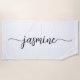Toalha de praia personalizada minimalista feminina simples e clean com monograma branco e nome em letra cursiva. Este design apresenta seu primeiro nome em uma linda tipografia de letra manuscrita com rabiscos (ou caligrafia) em fundo branco. São fáceis de personalizar. Ótimo presente feminino e elegante para aquecimento de casa, também para aniversário, dia das mães, casamento, festa de 16 anos, chá de noiva, despedida de solteira, para festa de formatura e é para a garota que gosta de coisas simples e limpas.