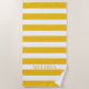 Toalhas de praia listradas com uma banda larga amarela e branca. As toalhas de listras náuticas são perfeitas para o seu dia na praia.Personalize com o seu nome ou monograma para uma aparência única.