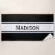 Aproveite esta toalha de praia personalizada na praia ou na beira do polo. Este design tem uma cor de fundo preta sólida com listras brancas e uma fonte moderna. Este é um presente fantástico para férias de família, festas ou eventos. O nome e a cor podem ser personalizados nas opções de personalização.