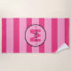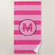 Toalha de praia de Monograma com Script Striped Rosa Personalizada. Adicione um toque divertido e feminino à sua experiência no barco ou no lado do poolside com esta toalha super giramente monificada, perfeita para celebrar no estilo. Com magenta e listras cor-de-rosa brilhantes, o design é centrado com um círculo de dentro de monograma chic. A inicial é branca nítida com um nome de script preto elegante e uma borda preta em negrito ao redor do círculo, criando uma aparência impressionante e divertida. Todas as cores podem ser personalizadas para se adequarem ao seu estilo pessoal ou corresponder ao seu decoro. Ideal para uma casa de festa de solteira, de irmandade, descansando na piscina, ou relaxando em um barco, esta toalha combina praticidade com encanto vibrante. Também faz um presente pensativo para aniversários, feriados, ou ocasiões especiais, perfeito para qualquer um que ama acessórios femininos personalizados!