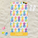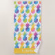 A toalha de praia de estilo tropical apresenta um padrão de abacaxi cor de arco-íris vibrante com gradiente de coloração aquosa de gravata. Personalize o texto personalizado com fundo amarelo brilhante com nome próprio, sobrenome ou outro texto preferido.