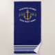 Faça um salto este verão com esta toalha náutica personalizada de praia! Criada a partir de microfibra super suave e absorvente, esta grande toalha de praia apresenta um sofisticado fundo azul-marinho e ouro adornado com um clássico design de âncora, "Bem-vindo a Bordo", o nome do seu barco e o ano do estabelecimento.