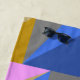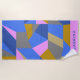 Essa toalha de praia de abstração geométrica divertida apresenta formas geométricas coloridas em uma paleta colorida de azul, rosa e ouro, personalizada com seu nome.