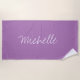 Toalha de praia na moda, clássica, subestimada e personalizada, com nome personalizável em um lindo roxo de lavanda sólida.