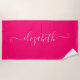 Esta toalha rosa-quente de praia apresenta uma elegante ortografia de um nome, que você pode personalizar.