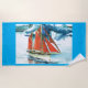 Esta aquarela foi feita na Islândia. Mostra um dos barcos de pesca clássicos, manipulados com as velas vermelhas tradicionais. O barco está indo por águas geladas para o mar aberto.