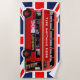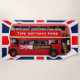 Tipo qualquer coisa que você gosta na caixa de texto editável de personalizar esta toalha de praia legal que caracteriza um ônibus vermelho de Routemaster do vintage, um símbolo famoso de Londres e Inglaterra, grupo em Union Jack!