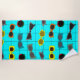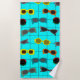 Esta toalha de praia tem uma design moderna do século médio de óculos de sol retrô em um campo de azul com uma grade.