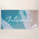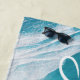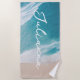 A toalha de praia Tropical Beach Sand Ocean Waves apresenta uma vista aérea de ondas de oceano azuis chegando a uma praia arenosa. Personalize-o com seu nome em uma fonte na moda, branca, de script.