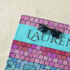 Esta adorável toalha de praia tem um efeito mosaico de piscina de natação em tons de rosa e turquesa que chamam os olhos. Você pode adicionar seu nome à banda azul aqua para personalizá-la. As ceras vibrantes, magenta, rosa pálido, ciano e blues dos azulejos são modernas, femininas e atentas, mas com o apelo eterno da decoração romana.