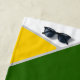 Esta toalha de vôlei personalizada apresenta a imagem de um vôlei simples, abstratamente sobredimensionado, que tem painéis verdes, dourados e brancos - personalize com o nome do atleta & número de camisa - você pode FACILMENTE mudar as cores desta toalha: pressione o botão azul "Editar Design" acima para usar a ferramenta de design de Zazzle para mudar os painéis verde e dourado do vôlei e as cores do texto para as cores da sua equipe cores favoritas - por katz_d_zynes