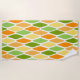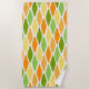 Esta toalha de praia tem um design moderno século médio de diamantes achatados em tons de amarelo, laranja e verde.