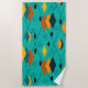 Esta toalha de praia tem um médio atômico moderno do século design de diamantes, e estereótipos em um campo de turquesa.