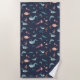 Toalha De Praia Padrão Azul de Animais do Mar do Oceano de Aquarel