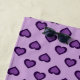 Esta toalha de praia apresenta corações roxos de dois tons em um fundo de lavanda.