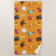 Toalha De Praia Padrão de Dia das Bruxas Bonito com fundo laranja