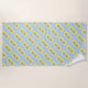 Toalha de praia com padrão de fita azul e fita verde pastel.