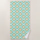 Toalha De Praia Padrão de Ikat Chic Dourado e Turquoise