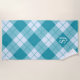 Toalha De Praia Padrão de xadrez branco e azul-turquesa
