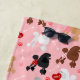 Dia de os namorados em forma de poodles em preto, branco, cinzas, damascos e casacos a cores castanhas vestindo em vermelho, rosa, bolinhas branca e suéteres cardíacos com estampas de pata espalhadas e seta em um fundo rosa.