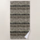Uma toalha de praia de verão com um padrão geométrico inspirado por motivos tradicionais da África. É desenhado à mão com um padrão de tinta preta e cores de fundo neutras. Este design incorpora listras, quadrados, triângulos, pontos e mais formas. Também tem uma textura angustiada para um sentimento rústico. Redimensionar o padrão e adicionar qualquer texto, se desejar. Toalha de praia única para quem ama a cultura africana!