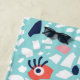 Toalha divertida de praia do terrazzo com um padrão geométrico sem costura com olhos estranhos em algumas das pedras de mármore do abstrato em corais e cores azuis.