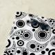 Um padrão retro paisley com círculos e pontos a preto a branco