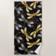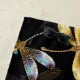Padrão sem costura com ouro, joias, libélulas brilhantes com asas brilhantes e detalhadas sobre fundo preto. Dourada libélula.