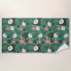 Toalha De Praia Padrão uniforme Flamingo rosa sobre fundo verde