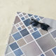 Uma toalha de praia de design moderna, com um padrão geométrico nas cores do oceano Atlântico, com uma área de fundo de texto (opcional) e texto personalizado (também opcional). Bonita para qualquer amante de praia ou hotel, B&B ou casa de hóspedes.