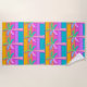 Esta Palma Primavera uma toalha de praia arrojada com palmeiras pastel é muito divertida! A design invoca a vibração moderna do século médio dos Primaveras de Palm do deserto, Califórnia. Tão legal pela piscina!