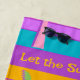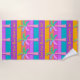 Personalize esta risca de pôr do sol divertida com palmeiras coloridas toalha de praia com sua própria mensagem, ou use a que aparece. Matizes vibrantes e vibrantes de multicores invocam a vibração moderna do meio século dos Primaveras de Palm do deserto, Califórnia.