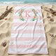 Este design de moda divertida apresenta um fundo branco, cor-de-rosa e listrado, com uma coroa floral colorida. Personalize o design com seu nome e monograma ou outro texto. Use as ferramentas de design para escolher qualquer cor de fundo, editar as fontes de texto e as cores ou carregar suas próprias fotos para criar uma toalha de praia personalizada exclusiva para crianças.