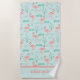 Uma toalha de praia de pássaros flamingos, rosa e verde, divertida. Uma combinação verde pastel excelente e rosa. Monograma dessas toalhas com suas iniciais ou nome.