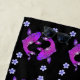 Toalha preta de praia embelezada com peixes koi roxos de estilo oriental cercados por flores minúsculas. Eu ofereço os flipflops, bolsa e visor correspondentes.