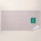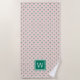 A toalha de praia com monograma pré-filhado, cor-de-rosa pálido e verde, apresenta um padrão alover de palmeiras, com o seu monograma inicial de solteiro centrado no fundo, em verde esmeralda vibrante.